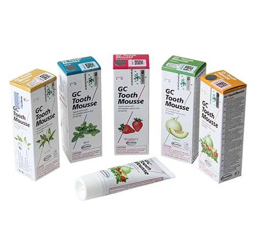 GC Tooth Mousse – это крем на водной основе, содержащий RECALDENT TM (СРР-АСР: Казеин Фосфопептид - Аморфный Кальций Фосфат). В полости рта молекулы СРР-АСР связываются с биопленкой, зубным налетом, кристаллами гидроксиапатита эмали зубов и оседают на мягких тканях, локализуя биодоступные кальций и фосфат.