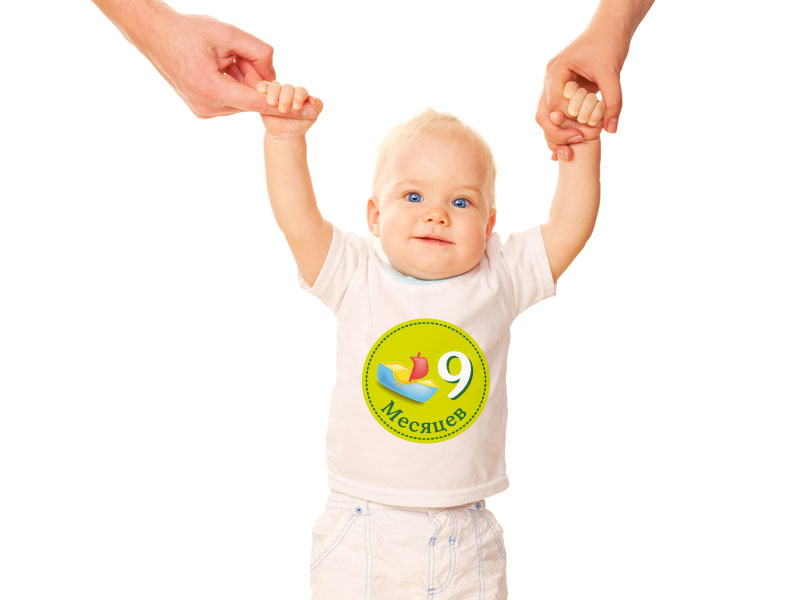 Взять наклейку соответствующую месяцу малыша. Наклеить на бодик малыша. Сделать отличное фото. Поделиться с друзьями :-). Затем наклейку обязательно снять. Не оставляйте наклейку на малыше без присмотра. Не стирайте одежду с наклейкой.
