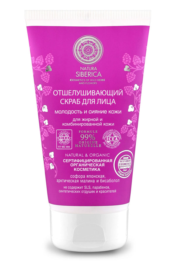 Нежный скраб для лица Natura Siberica на основе софоры японской, косточек арктической малины и бисаболола мягко отшелушивает, обновляет и восстанавливает кожу. Насыщает кожу питательными веществами, улучшает клеточное дыхание, придает ей гладкость и упругость.