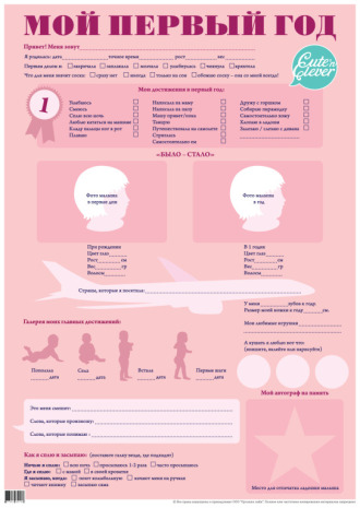 Маме с папой нужно просто отметить все достижения и победы своей малышки за весь первый год, вписать все ее умения и изменения, вклеить фото при рождения и в годик. Этот плакат украсит Ваш праздник и наглядно расскажет гостям о самом важном из жизни Вашей крошки.