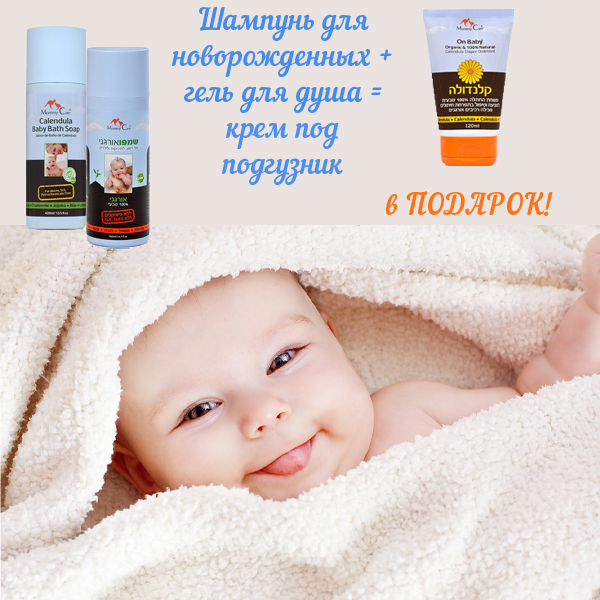 Шампунь для новорожденных + Гель для душа = Крем под подгузник В ПОДАРОК!