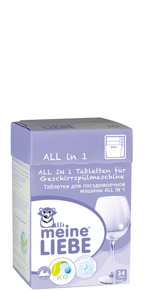 Для безупречного мытья посуды в посудомоечной машине воспользуйтесь таблетками Meine Liebe ALL IN 1. Это моющее средство эффективно и без особого труда придаст вашей посуде чистоту, блеск, сияние и оставит приятный аромат после мытья.